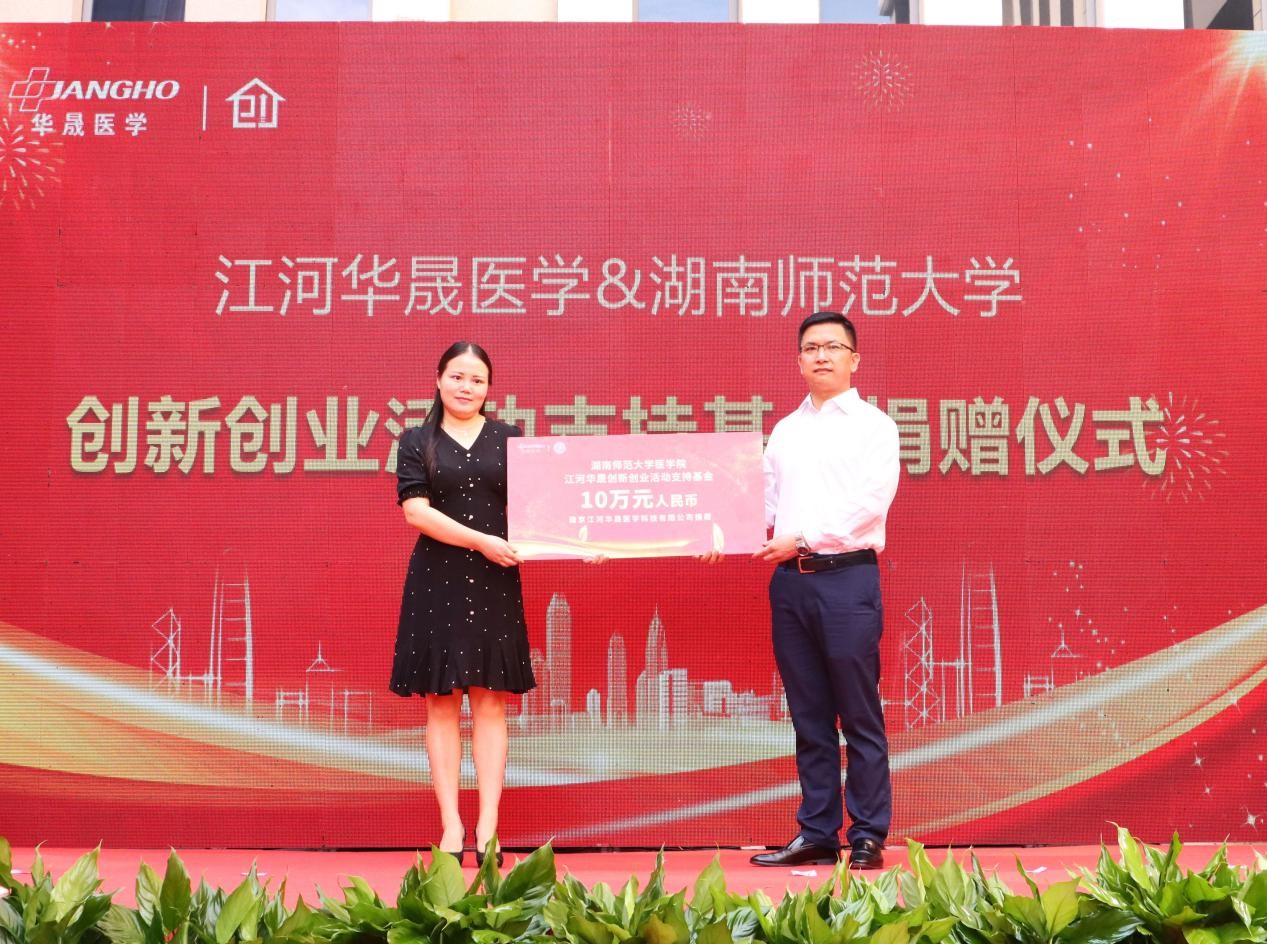 现场,qm球盟会官方网站教育基金会副秘书长刘芸玲代表学校接受了江河华晟医学向我院捐赠的十万元人民币的创新创业活动支持基金,这预示着江河华晟医学和我校的合作正式拉开了帷幕。该基金将用于鼓励支持学生积极参与创新创业实践,激发学生创新创业活力和能力。