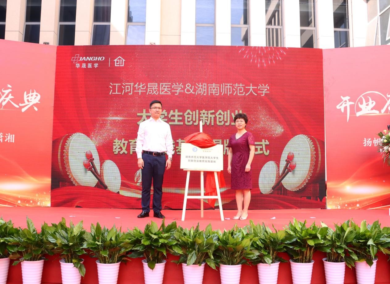 随后,鄢朝晖和陈孔维一起为“江河华晟大学生创新创业教育实践基地”揭牌。鄢朝晖表示:“携手江河华晟医学合作共建大学生创新创业实践基地,深刻感受到公司顺应“健康中国”国家战略,对医学检验事业发展的重视程度,同时也看到公司先进的理念、扎实的作风和稳定的市场资源,我们希望通过校企合作、项目主导等有效形式,构建医学生培养的新模式、新机制,使创新创业基地成为培养高层次应用型、复合型、创新型、创业型人才的摇篮,成为我省医学检验行业技术创新、成果孵化转化基地。对合作共建,我们充满信心,对共建的成果充满期待。”