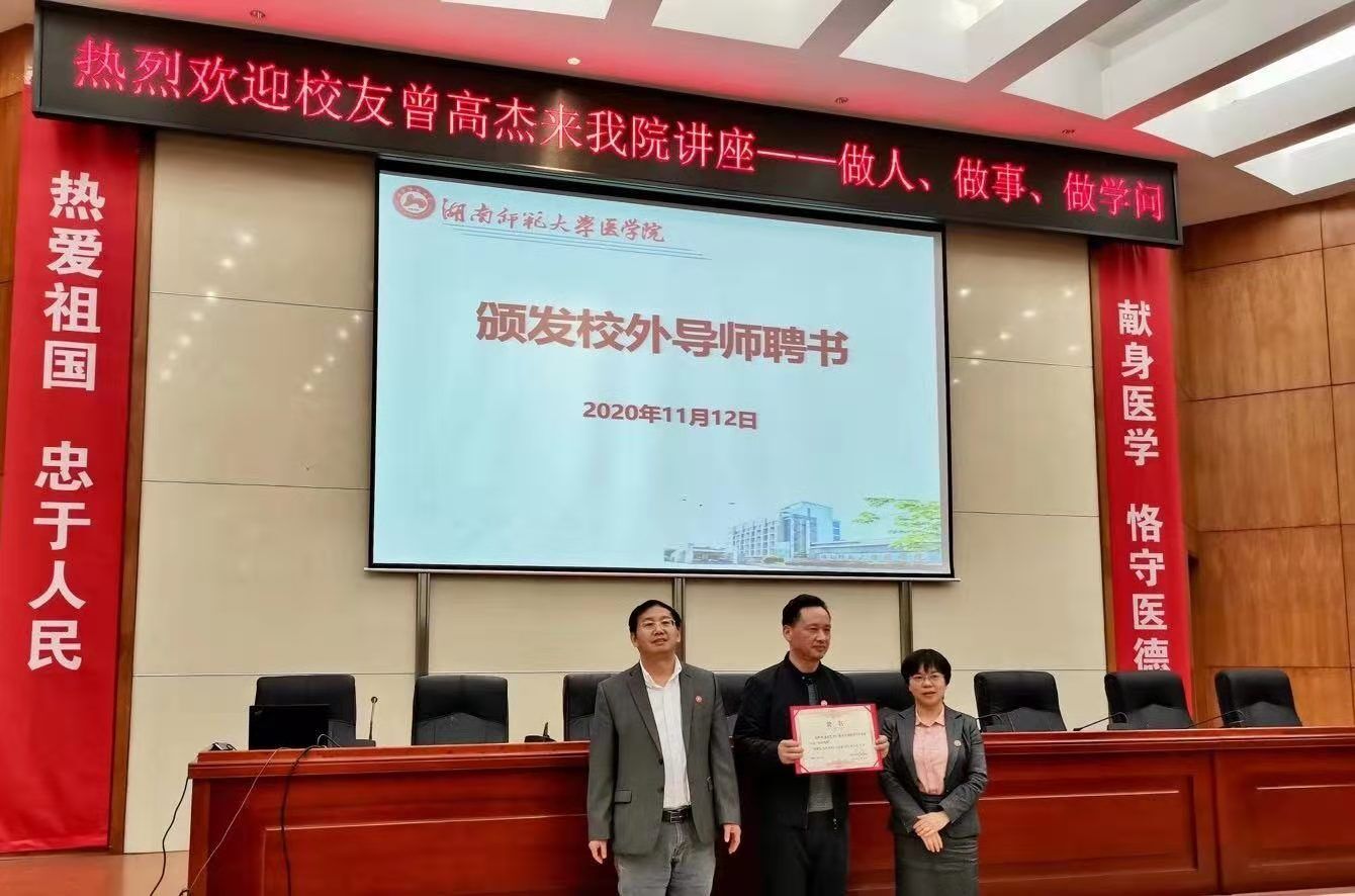 我院院长何祖平为曾高杰颁发了校外导师聘书。