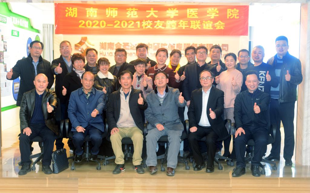 12月25日,我院2020-2021校友跨年联谊会在湖南金圣达空中医院信息服务有限公司(以下简称“金圣达”)多功能会议厅举行。qm球盟会官方网站原副校长、医学校友会会长瞿树林,医学校友会副会长谭伟、谈发金(81级)、曾高杰(87级)、李健和(88级)、曾秋桥(88级)等20余位校友,我院院长何祖平、党委书记鄢朝晖、副院长邓文艳、副书记陈松、校医管办总支书记杨洁芳、我院行政办主任向延娥等30余人参加了此次联谊会。医学校友会副会长、金圣达董事长曾秋桥主持联谊会。