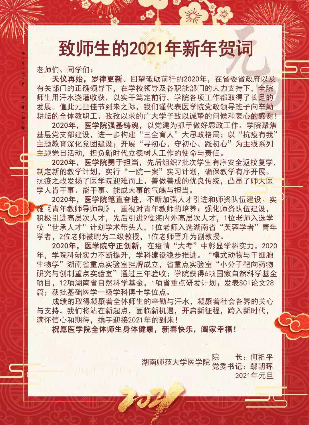 上一条:致校友的2021年新年贺词 下一条:我院开展期末实验室安全大检查