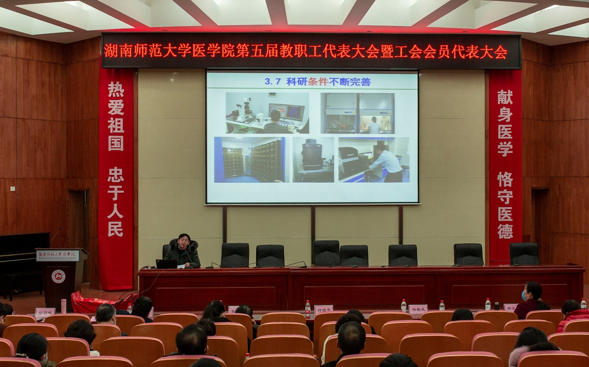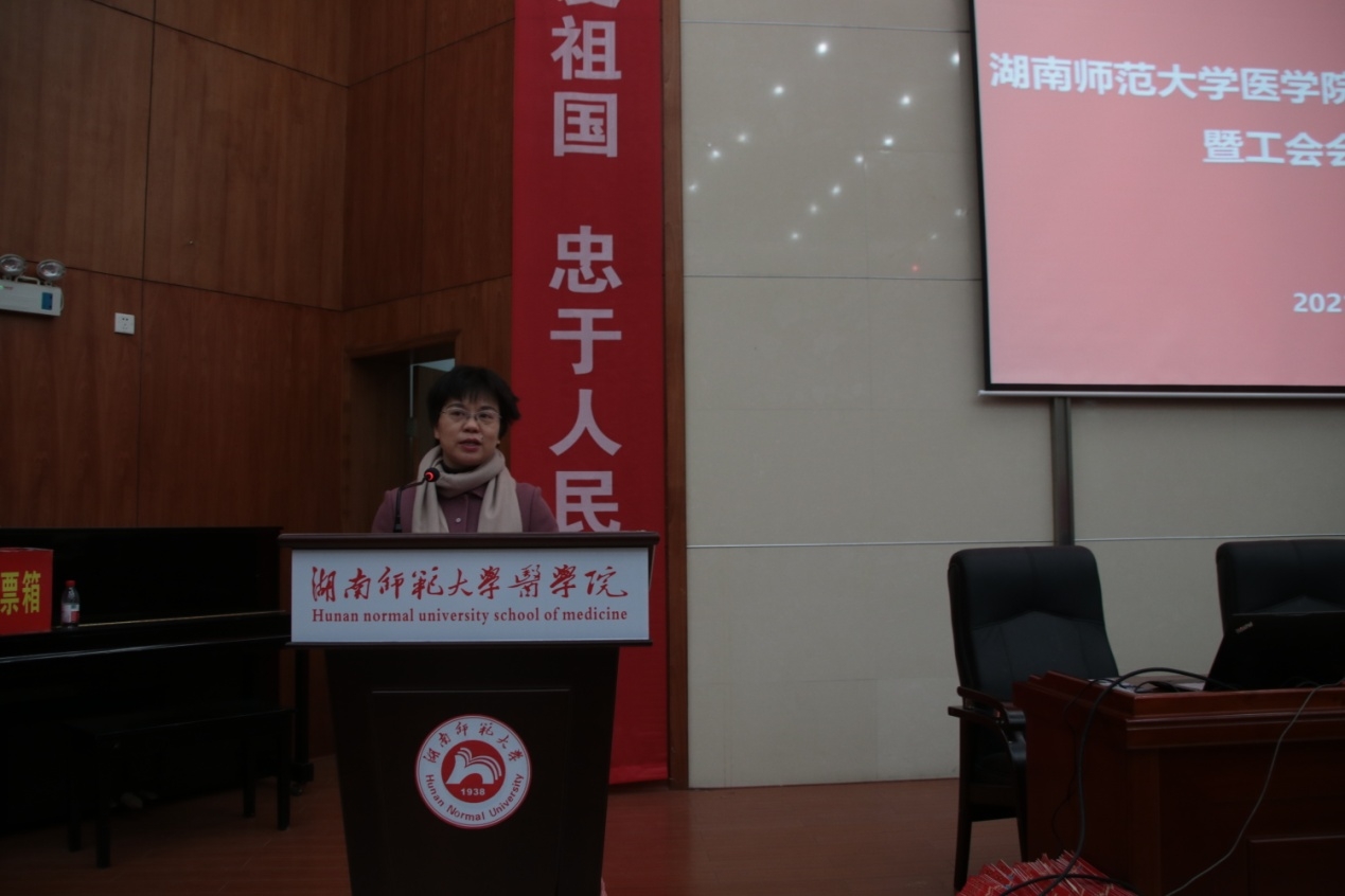 2021年1月14日上午,我院第五届教职工代表大会暨工会会员代表大会在仁医楼学术报告厅隆重召开。我院全体院领导、特邀代表、列席代表及全体教职工代表参加会议,校工会副主席杨格花出席会议,我院党委书记鄢朝晖主持大会。