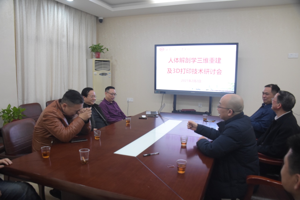 2021年2月2日下午,人体解剖学三维重建及3D打印技术研讨会在我院办公楼三楼会议室举行。本次会议特邀湖南医药学院副校长饶利兵教授担任主讲人,我院副院长张坚松教授、中南大学湘雅qm球盟会官方网站形态学实验中心主任潘爱华教授、湖南中医药大学解剖教研室主任李新华教授、我院医学基础实验中心主任袁立明、解剖学教研室主任简晓红等出席。会议由邓春雷老师主持。