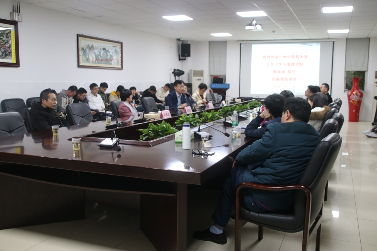 会上,周尚成教授一行就中医药如何参与传染病的防治和农村公共卫生事业的发展与师生进行了的深入的交流与探讨。