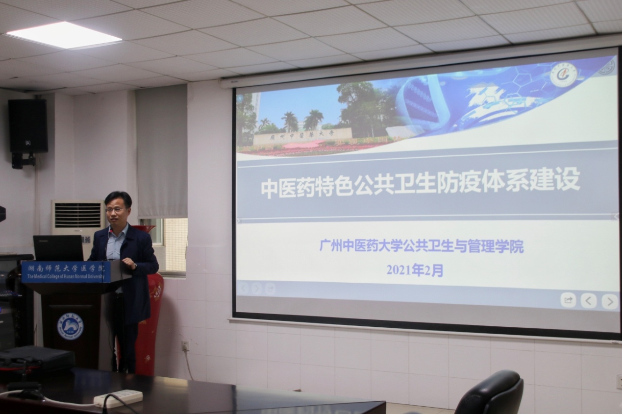 3月16日,广州中医药大学公共卫生与管理学院院长周尚成教授应qm球盟会官方网站医学人文研究中心和qm球盟会官方网站邀请,为我院师生做题为“中医药特色公共卫生防疫体系建设”讲座,院党委书记鄢朝晖、院长助理叶湘漓、医学人文研究中心主任王卫红、学术委员会主任吕媛及预防系部分老师及本科生、研究生听取了报告,讲座由我院院长何祖平教授主持。