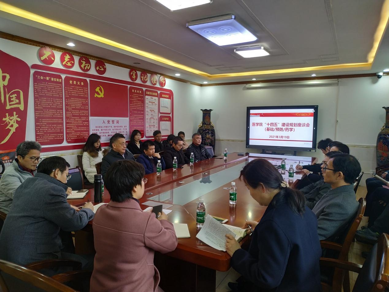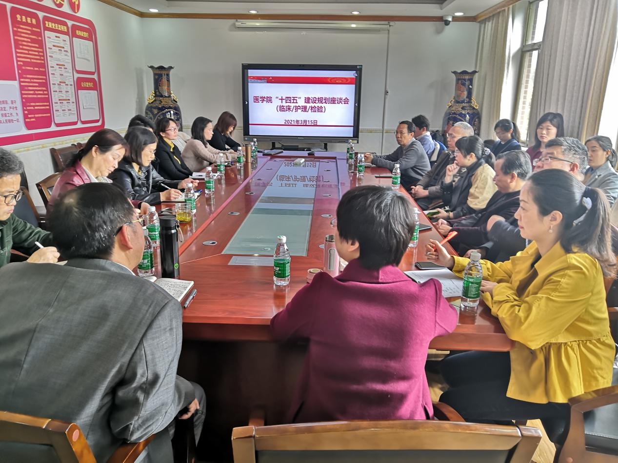 近日,我院组织全院教师代表召开我院“十四五”建设规划座谈会。临床医学、医学检验、护理学、预防医学、药学、基础医学6个系的系主任、支部书记、教研室主任和青年教师代表60余人参加了座谈,会议由院长何祖平主持,党委书记鄢朝晖、副院长张坚松、邓文艳、党委副书记陈松、院长助理叶湘漓参加了会议。