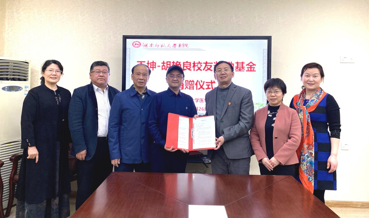 2021年3月26日,1999级药学专业校友、湖南金六谷医药物流有限公司合伙人王坤胡艳良夫妇签署捐赠协议书,向qm球盟会官方网站教育基金会捐款30万元,奖励我院优秀师生,祝贺我院从事医学教育110周年。