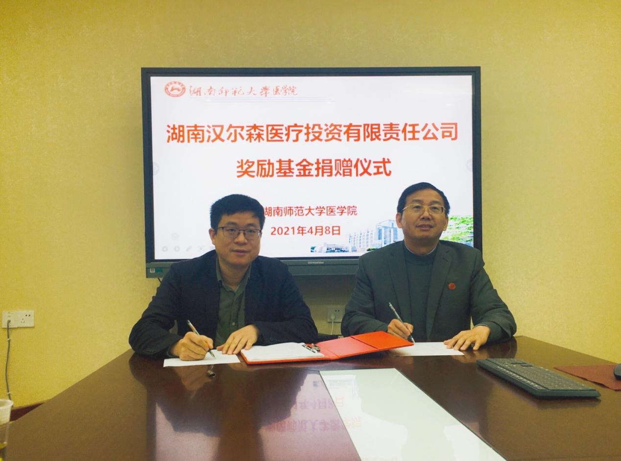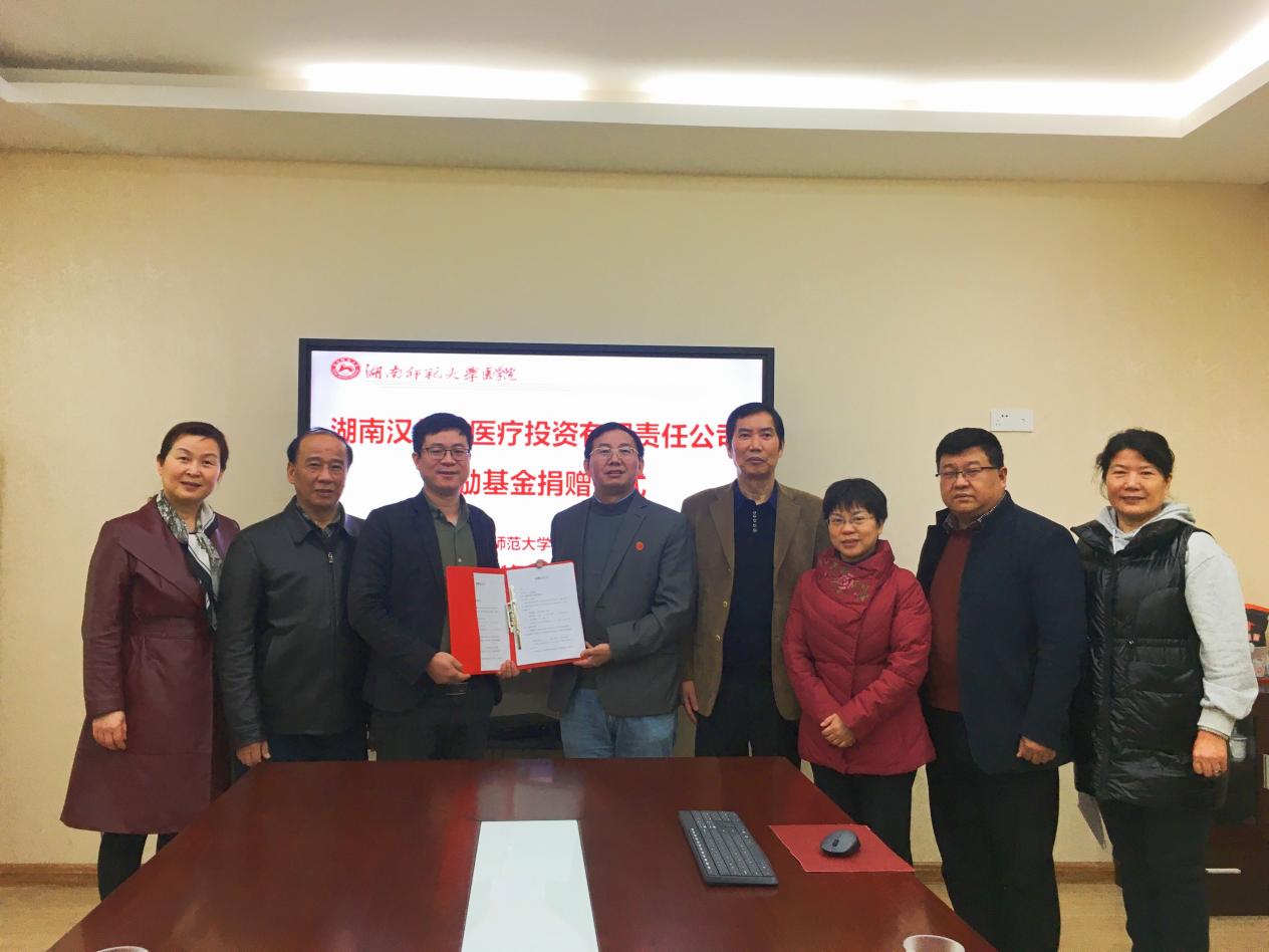 4月8日,我院于办公楼三楼会议室举行湖南汉尔森医疗投资有限责任公司奖励基金捐赠仪式,湖南汉尔森医疗投资有限责任公司董事长戴敬康、qm球盟会官方网站医学分会会长瞿树林、我院院长何祖平、院党委书记鄢朝晖、副院长邓文艳、院党委副书记陈松、qm球盟会官方网站校友会医学分会副会长谭伟等参与捐赠仪式。仪式由我院院长何祖平主持。
