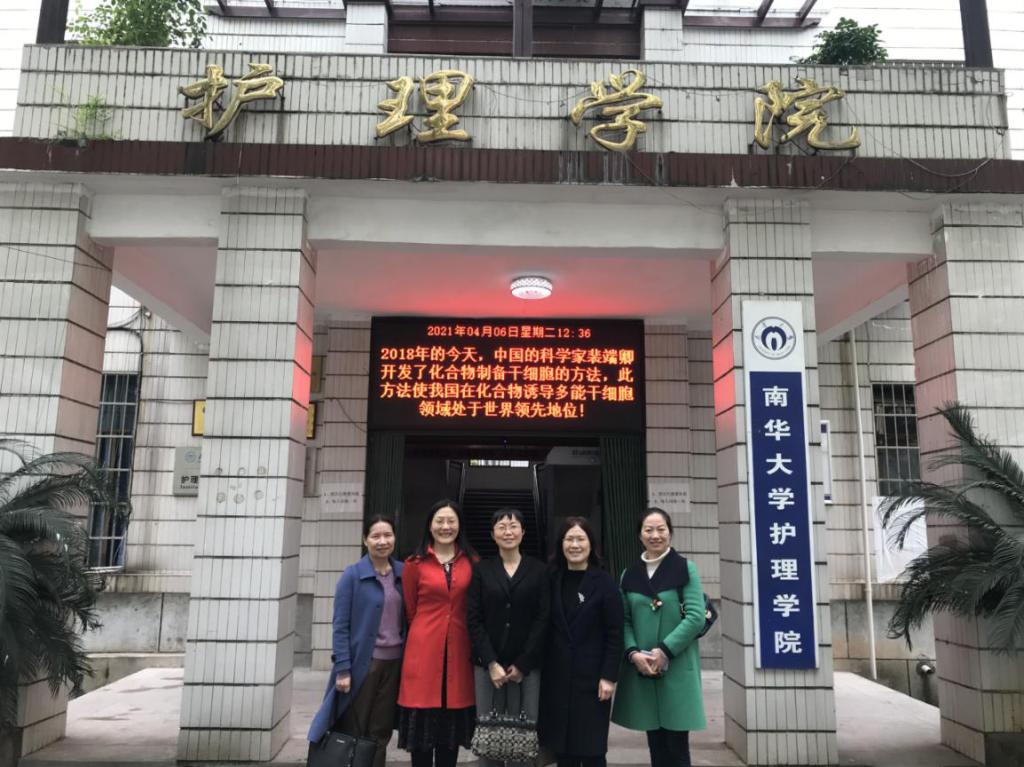 4月6日,在我院党委书记鄢朝晖、党委副书记陈松的带领下,护理系主任王卫红及各教研室主任、教师到南华大学护理学院交流学习。南华大学护理学院党委书记陈晓坚、护理学院院长廖力及科研办、教务办、行政办和教研室相关负责人参加了交流座谈会。