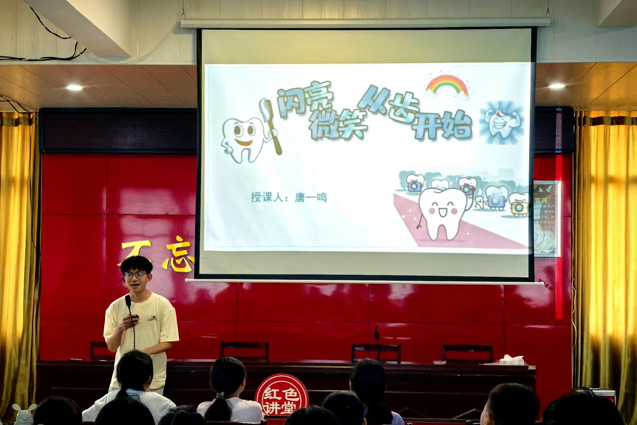 为提升青少年健康素养,丰富暑期文化生活,7月9日,医学部“医路乡随”暑假社会实践团在攸县杜口村宣传关于护牙、饮食的健康知识和开展制作漆扇的课程。