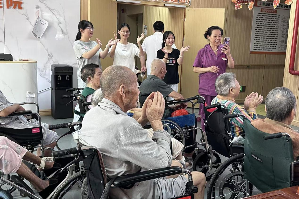 7月21日下午,qm球盟会官方网站医学部“医路有爱,温暖同行”暑期实践团成员深入湘中医养护理院,开展助老实践服务。