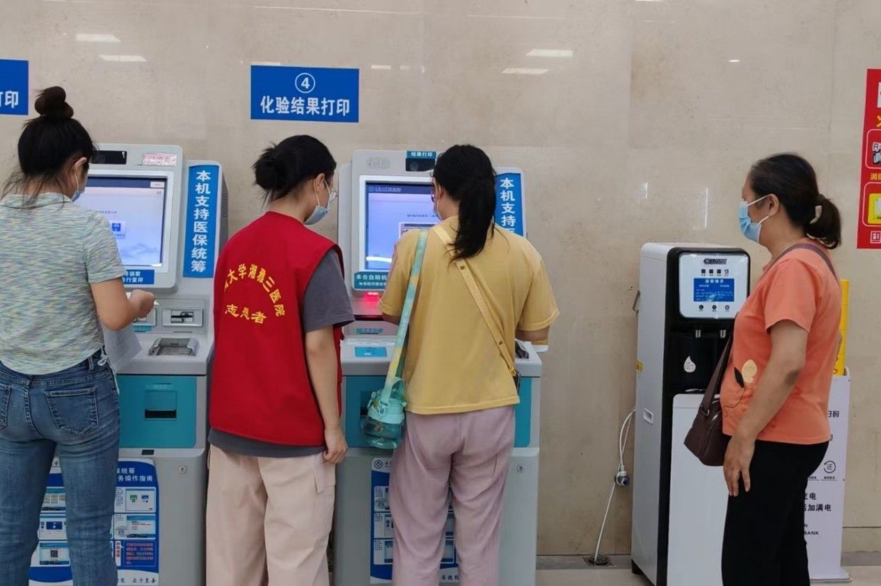 活动期间,在中南大学湘雅三医院的服务大厅及各诊室区域,志愿者们积极为前来就诊的患者及家属提供指引与帮助。他们主动引导患者有序就医,协助维持各窗口及候诊区的秩序,并耐心帮助患者及家属通过医院公众号或自助设备完成预约挂号等操作。此外,志愿者清晰指引需进行各项检查的患者前往标本送检处,同时为其讲解相关检查流程。活动最后,志愿者们表示:希望通过热情细致的服务,切实提升患者的就医效率,共同营造一个更加便捷、舒适的就诊环境。