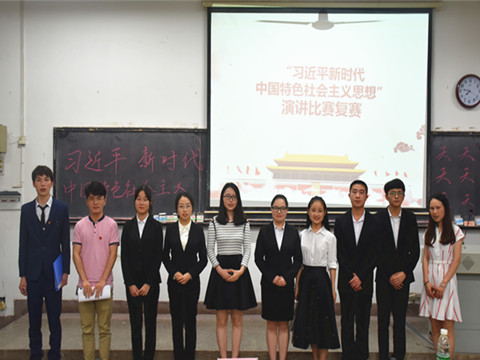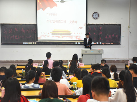 主持人短暂介绍后,比赛在掌声中开始,2015级,2016级及2017级的参赛选手依次上台演讲,表达了对习近平新时代中国特色社会主义思想的政治认同、思想认同、情感认同。其中,2015级树临一班邓玉琼对比了中国留学生及叙利亚留学生的不同归国待遇,纵观中国的历史成就,表达了中国特色社会主义的道路高度自信,抒发了爱国之情,夺得了比赛一等奖。