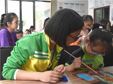 此次活动的主要内容是陪伴绘画班的留守儿童和唐氏儿童绘画,协助美术老师完成当堂课程。二十名志愿者到达咸嘉湖社区服务中心后,先向服务中心负责人咨询了注意事项以及如何应对课堂上的突发状况。随后,在美术老师的安排下,一部分志愿者与提前到的孩子们进行交流,营造温暖快乐的生活氛围;另一部分志愿者则着手准备上课所需要的颜料盘、洗笔桶。在整个活动过程中,志愿者紧跟美术老师的教学节奏,一对一陪伴孩子进行绘画。对于擅长绘画的孩子,志愿者不吝夸赞;对于较为不擅长的孩子,志愿者也耐心指导、鼓励他们,增强他们的自信。