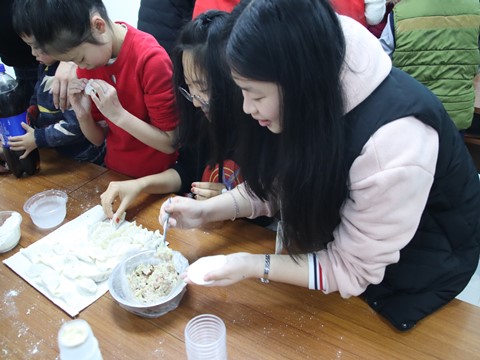 全体志愿者到达目的地后,在特定地点进行家教。当孩子们遇到难题时,志愿者们用生动易懂方式为其解答,培养孩子们举一反三的能力。随后,转移阵地于古樟树服务中心,与其它学校志愿者一同开展趣味课堂。雨花区雨滴儿成长乐园创始人张岚为优秀志愿者颁发奖状后,主持人张哲俊将在场人员分为两大组,介绍游戏规则并进行演示,游戏结束后,获胜队伍领取了奖品。活动高潮便是包饺子环节了,张哲俊为在场人员科普了冬至的相关知识和其习俗来源后,各组志愿者便与孩子们协作完成包饺子任务,并且享受了他们的成果。活动结束后,志愿者和孩子们合影留念并告别。
