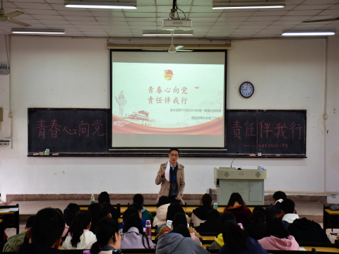 3月15日中午,我院野平团校2019年第一期理论团课“青春心向党,责任伴我行”开课典礼于勤医楼七教室开展。团课由我院团委青年发展工作部组织举办,院团委书记李强出席并担任此次团课的主讲人。全体野平团校新成员参与此次团课。