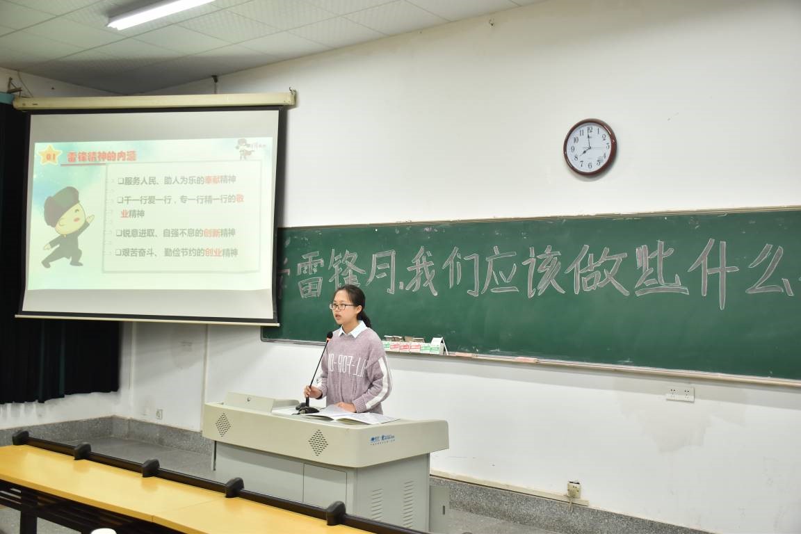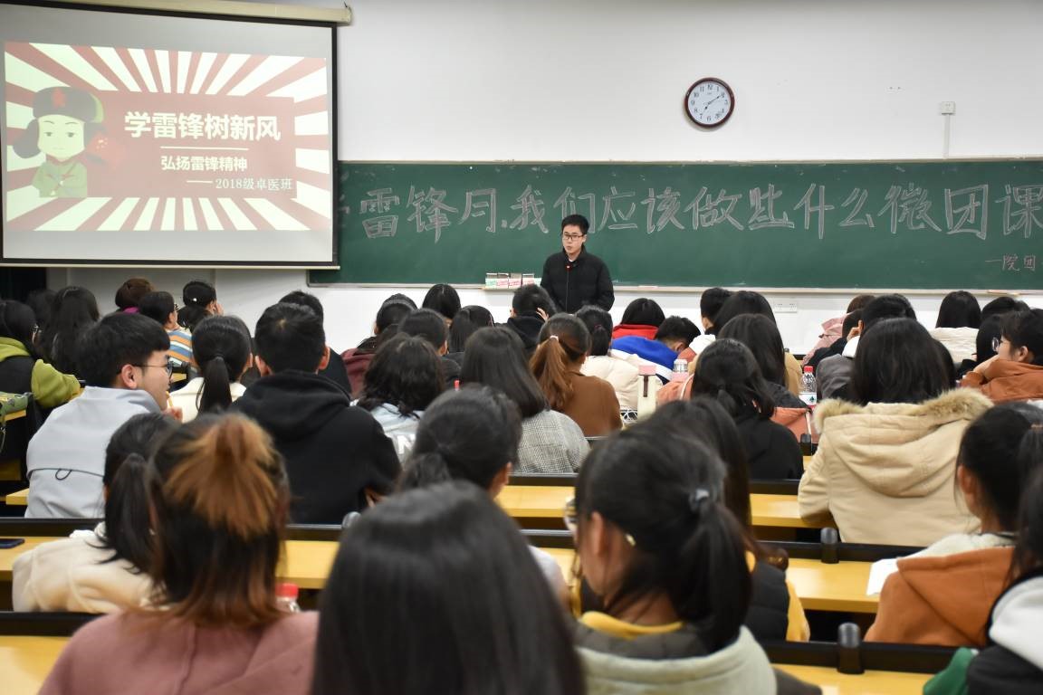 每个班级的代表从不同的角度谈到了个人对于“雷锋精神”的理解。来自18级卓医班的同学结合2018年感动中国十大人物的事迹谈及对雷锋精神的新理解;18级检验班的代表结合了本班同学以“传承雷锋精神”为主题的团日活动;18级树临一班的同学提到了作为一个医学生,我们“雷锋精神”体现的价值所在。这些都加深了大家对“雷锋精神”的理解。各班也从不同角度谈到了“传承雷锋精神,我们该做什么”的问题,不同角度的多种回答也丰富了大家的见识面,让大家了解到了更多新时代弘扬“雷锋精神”的实际行动。