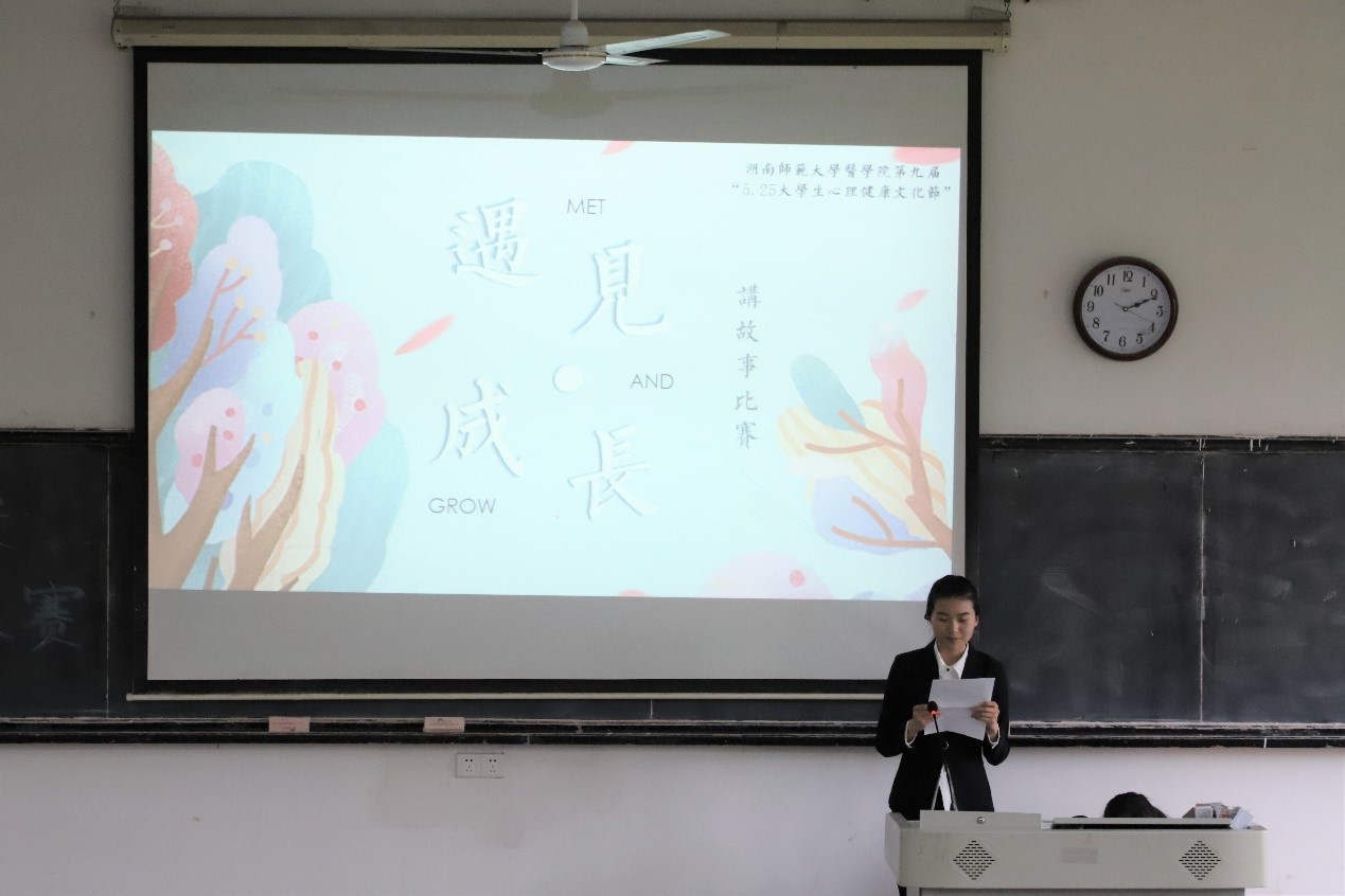 4月28日下午,我院于勤医楼七教室举办"遇见·成长"讲故事大赛,此次大赛由我院学生会心理健康服务部承办,孙佳康担任此次大赛主持人,我院团委学生副书记朱雯钰、学生会主席刘重阳、红十字会秘书长何健乐等担任评委,除此之外,到场人员还包括大赛的参赛选手以及我院部分学生。