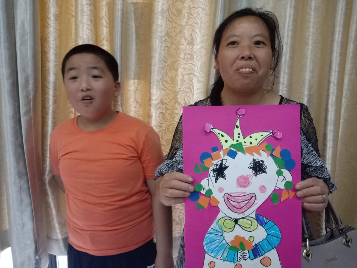 负责人余权带队到达目的地后,老师交代注意事项,活动正式开始。此次绘画班课程的主题是母亲节,由唐氏宝宝动手画一个小丑人物,并将其作为母亲节礼物送给自己的母亲。志愿者接到任务后便开始协助唐氏宝宝绘画,活动过程中,志愿者们不断和唐氏宝宝交流,询问他们绘画的想法,并给他们构图、递画笔、裁剪、粘贴,双方一起合作完成了作品。