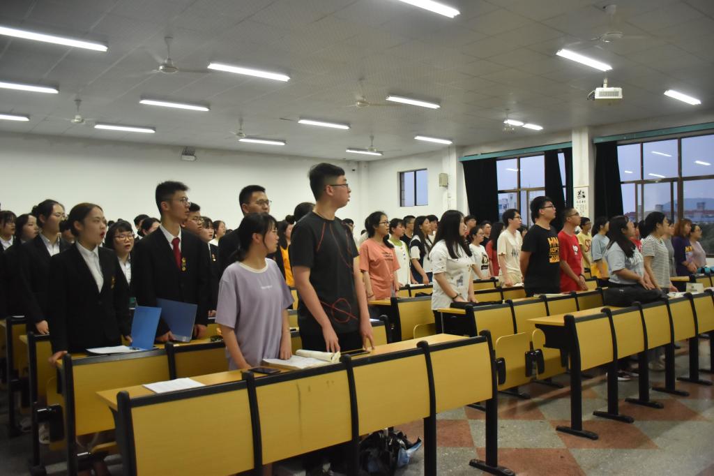 竞职演讲环节结束,全体起立,奏唱团歌。至此,我院第十七次团员学生代表大会预备会议正式结束。