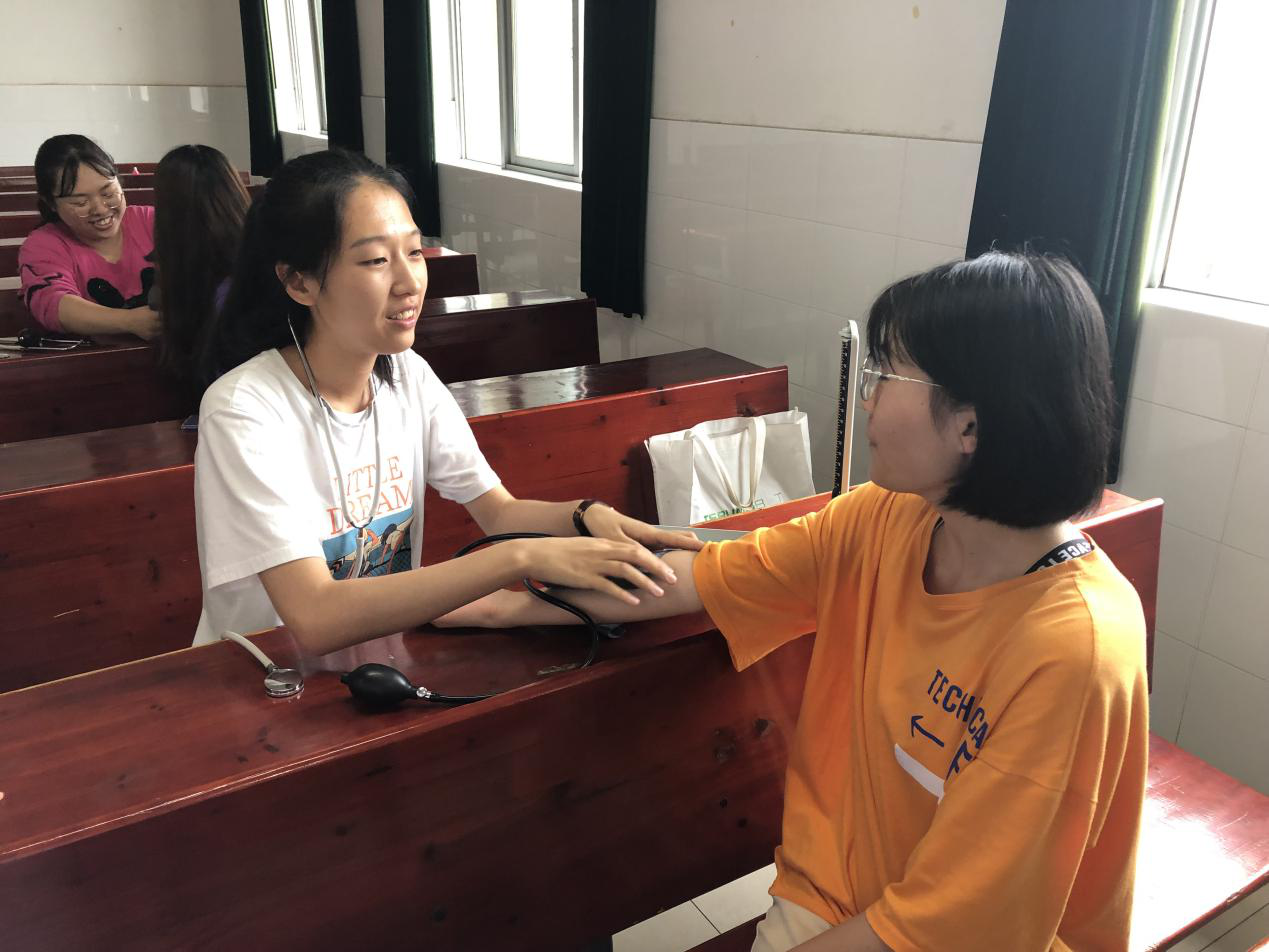 7月9日下午,我院学社联赴邵阳邵东暑期社会实践团部分成员于仁医楼304教室学习测血压、测血糖和测血型的相关知识并进行实践操作。本次学习由团委大学生课外活动指导部健康咨询队成员从旁进行操作指导。