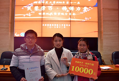 2016年12月29日下午三点,在教育科学学院101报告厅举行了qm球盟会官方网站第十一届“芙蓉学子•榜样力量”颁奖仪式暨事迹分享会。副校长周俊武,团委书记龚舒等领导出席了此次活动。